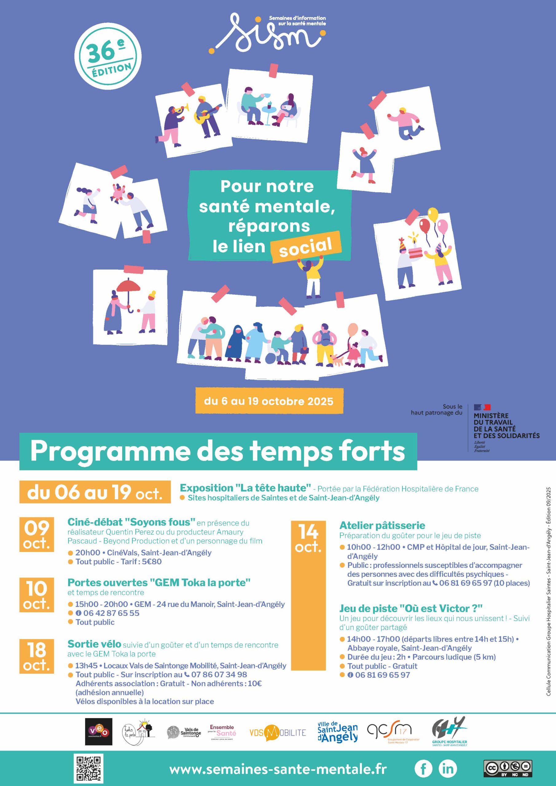 202510 octobre : Portes ouvertes au GEM de 15h à 20h 06 42 87 65 55 14 octobre : atelier pâtisserie au CMP de 10h à 12h inscriptions au : 06 81 69 65 97 14 octobre : Où est Victor ? Jeu de piste dans la ville départs entre 14h et 15h à l’Abbaye […]