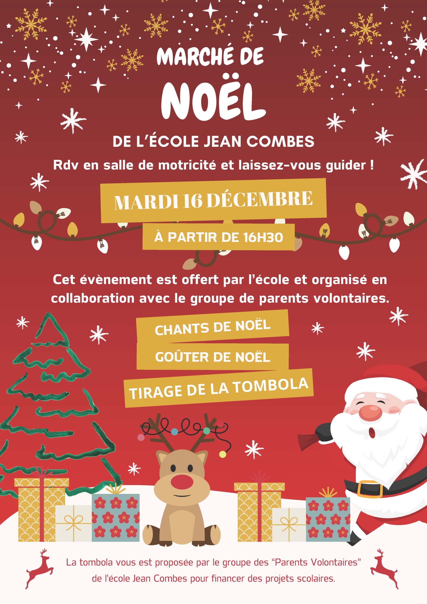 2025En savoir +Marché de Noël de l’école Jean Combes organisé par un groupe de parents volontaires. Tombola, goûter et chants de Noël. à partir de 16h30