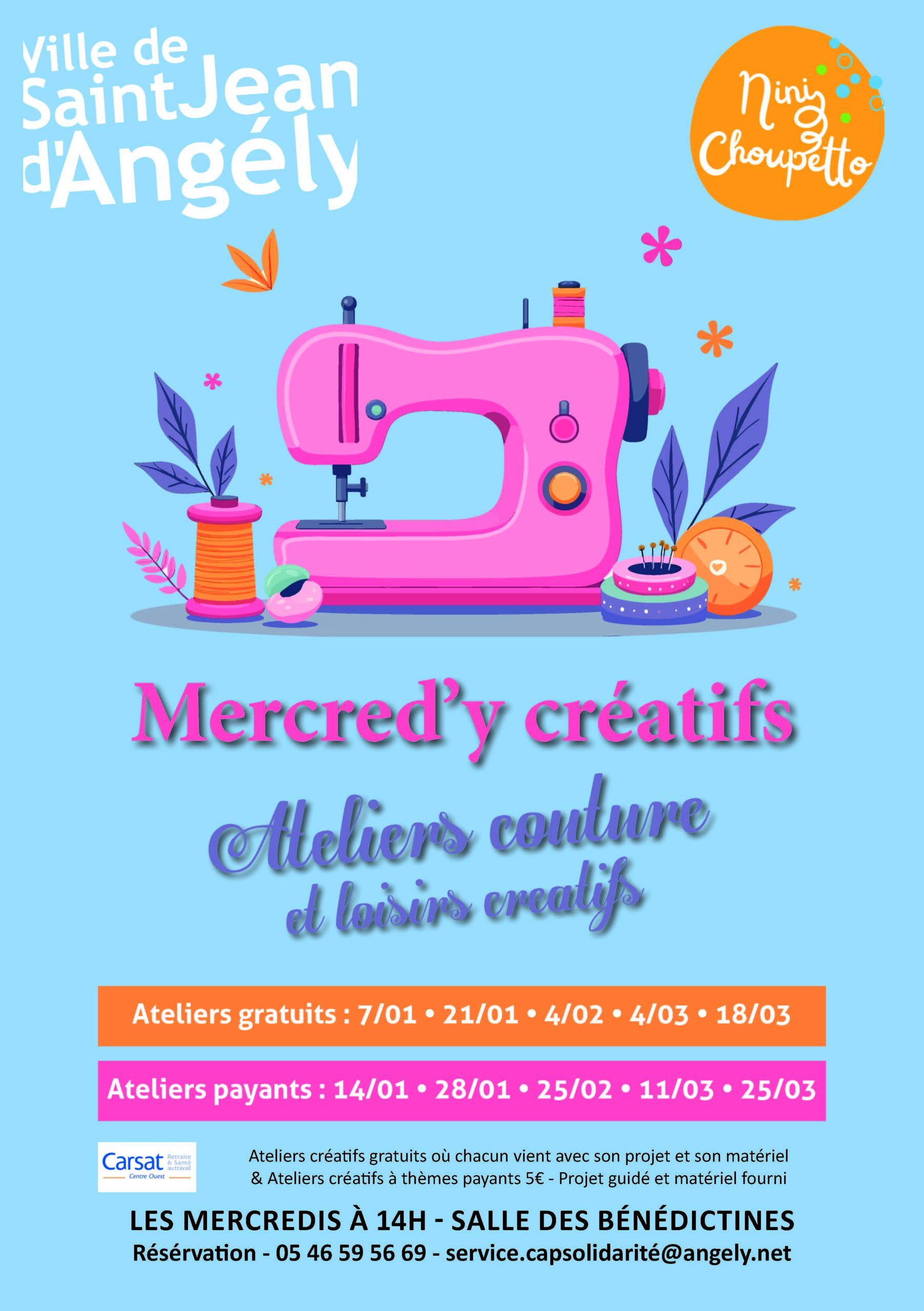 2026En savoir +Atelier libre avec accompagnement par une professionnelle sur un projet personnel (matériel non fourni). Gratuit, sans niveau requis Sur réservation au 05 46 59 56 69 Salle des Bénédictines – rue des Remparts