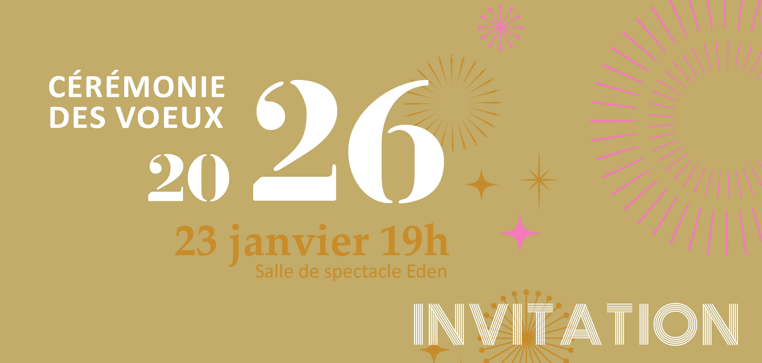 2026En savoir +Cérémonie des vœux. Vendredi 23 janvier 2026 19 heures Salle de spectacle Eden