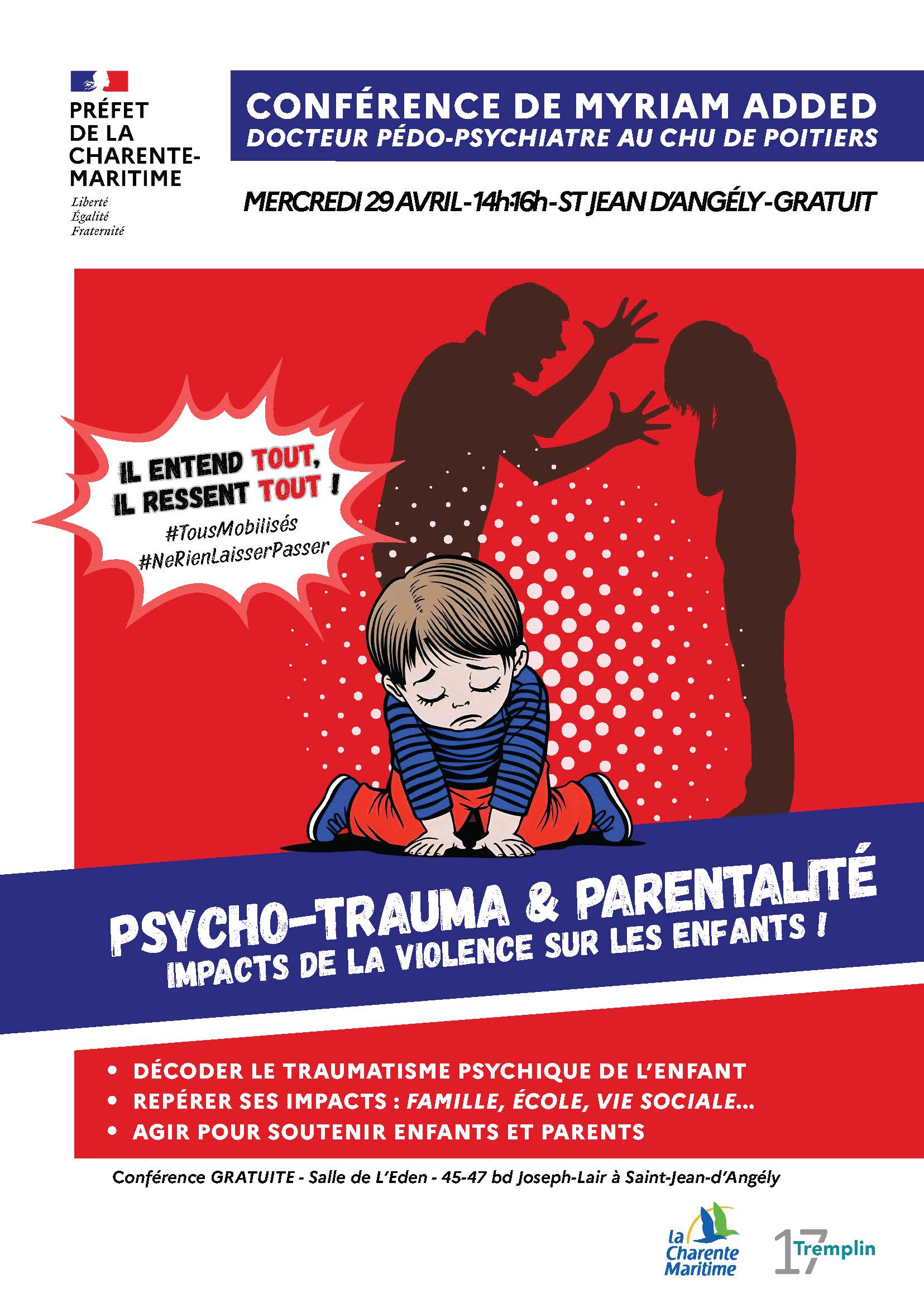 2026En savoir +Psycho-trauma & parentalité, impact de la violence sur les enfants | gratuit | 14h-16h | réservation : https://www.helloasso.com/associations/association-tremplin17/evenements/conference-parentalite-psycho-trauma