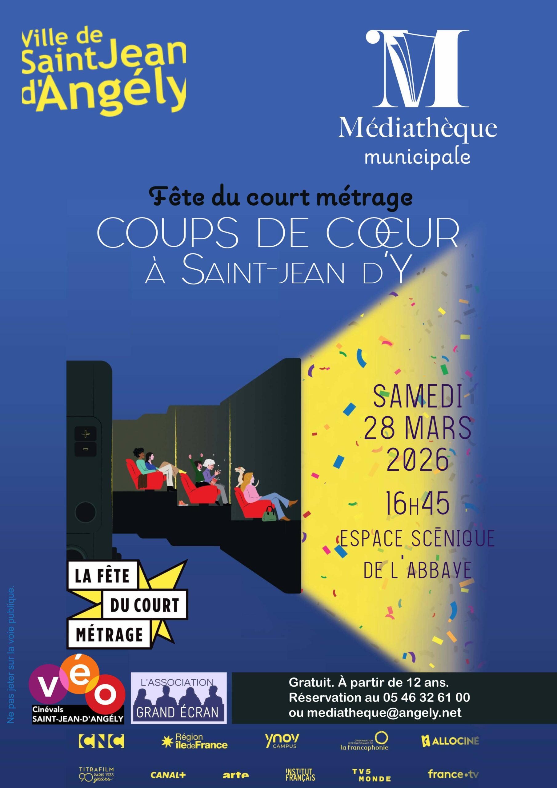2026En savoir +5 courts métrages coups de cœur du public. Projection suivie d’un verre du cinéphile. Gratuit 16h45-18h15 À partir de 12 ans Sur réservation 05 46 32 61 00 ou mediatheque@angely.net Espace scénique de l’Abbaye royale En partenariat avec l’association Grand Ecran, Cinévals, la Micro folie