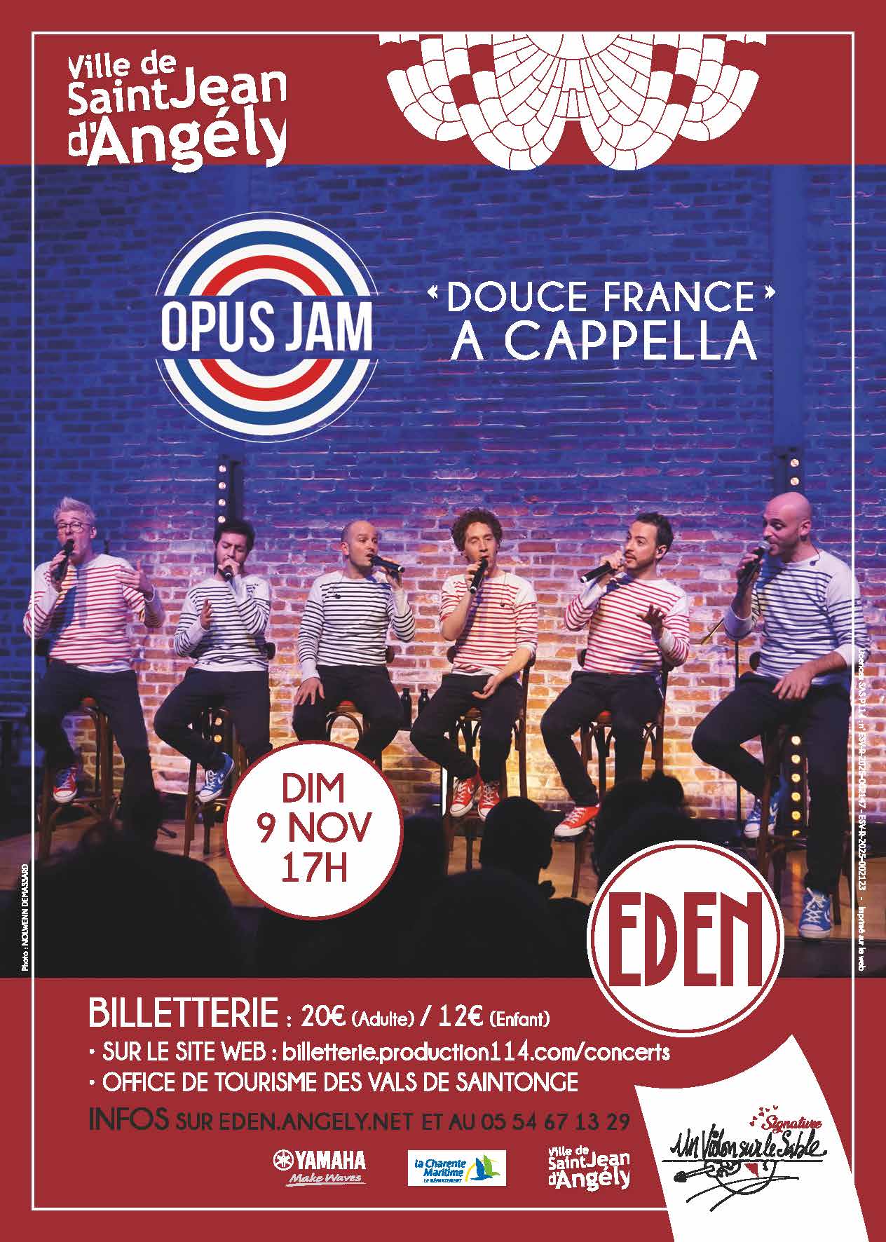 2025Concert Opus Jam / 9 novembre 2025 à l’Eden Composé de six chanteurs aux horizons musicaux variés qui se produisent sans aucun instrument, « Douce France » nous enchante par les voix ! Après avoir remporté le Grand Prix du concours international de chant a cappella de Moscou en 2017 avec « Motown and Soul », les artistes d’Opus […]