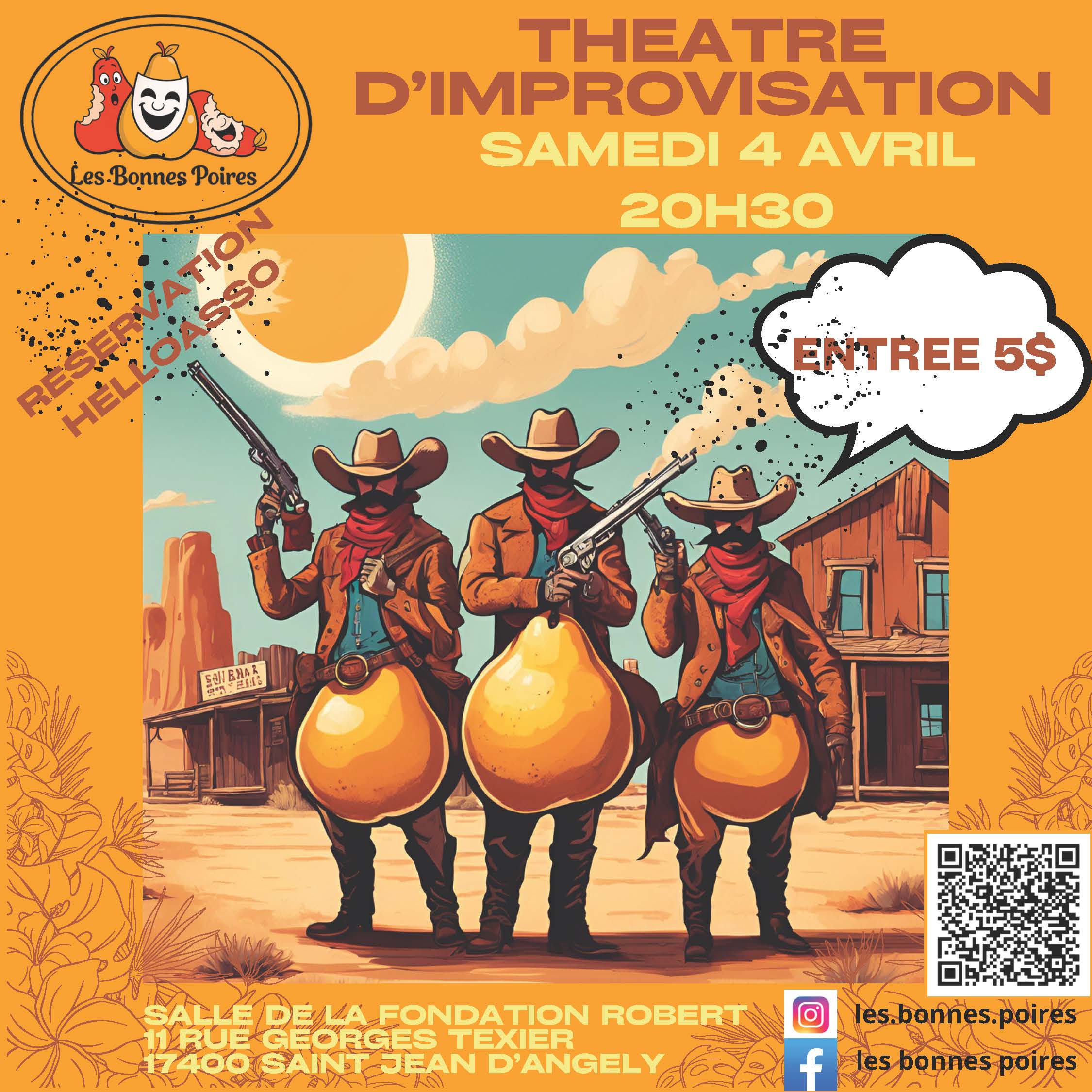 2026En savoir +Les Bonnes Poires dégainent leur théâtre d’improvisation pour une soirée où tout peut arriver… et surtout n’importe quoi ! Pas de texte, pas de filet : uniquement l’imagination des comédiens et les idées du public. Attendez-vous à des personnages improbables, des situations complètement déjantées et des histoires qui naîtront sous vos yeux. Une chose est […]